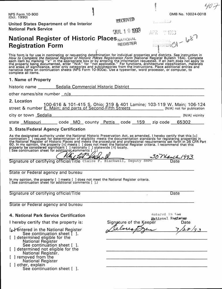 Sedalia ; Roughly Ohio, Lamine, W. Main, E. Main, and parts of Second-Fifth Sts.