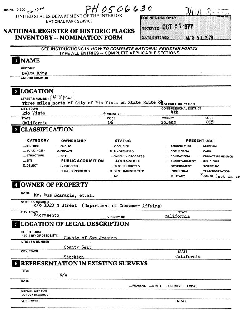 Rio Vista ; 3 mi. (4.8 km) N of Rio Vista on CA 84