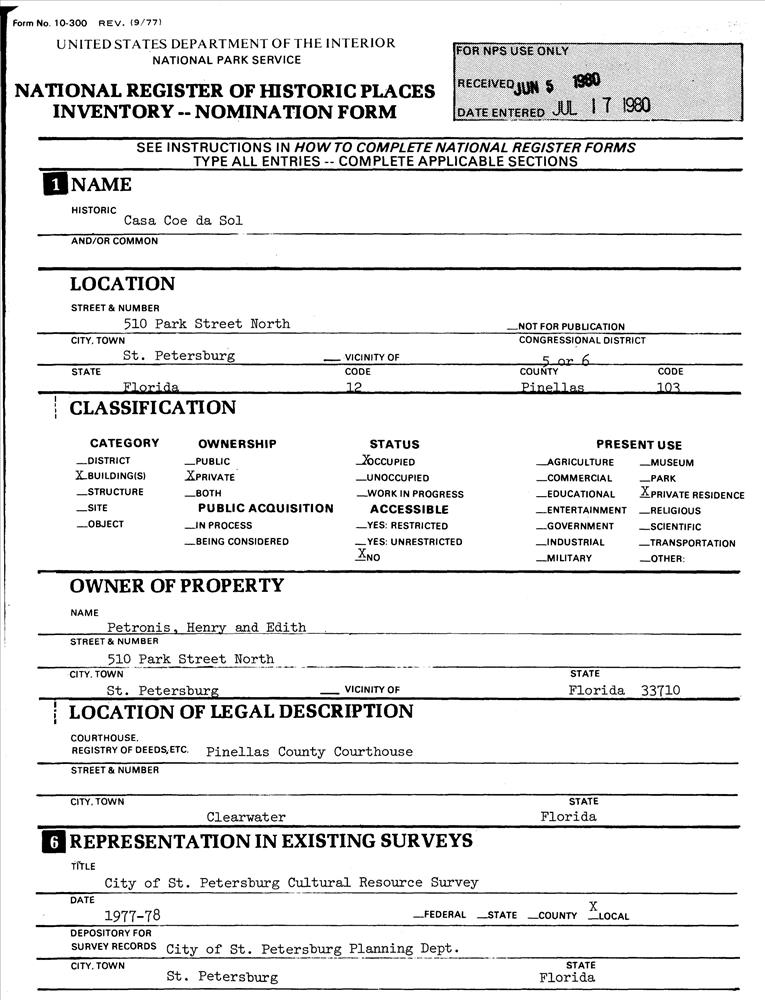 St. Petersburg ; 510 Park St.