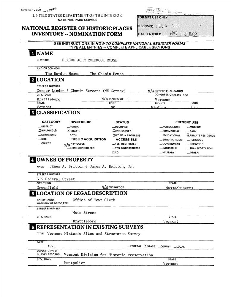 Holbrook, Deacon John, House