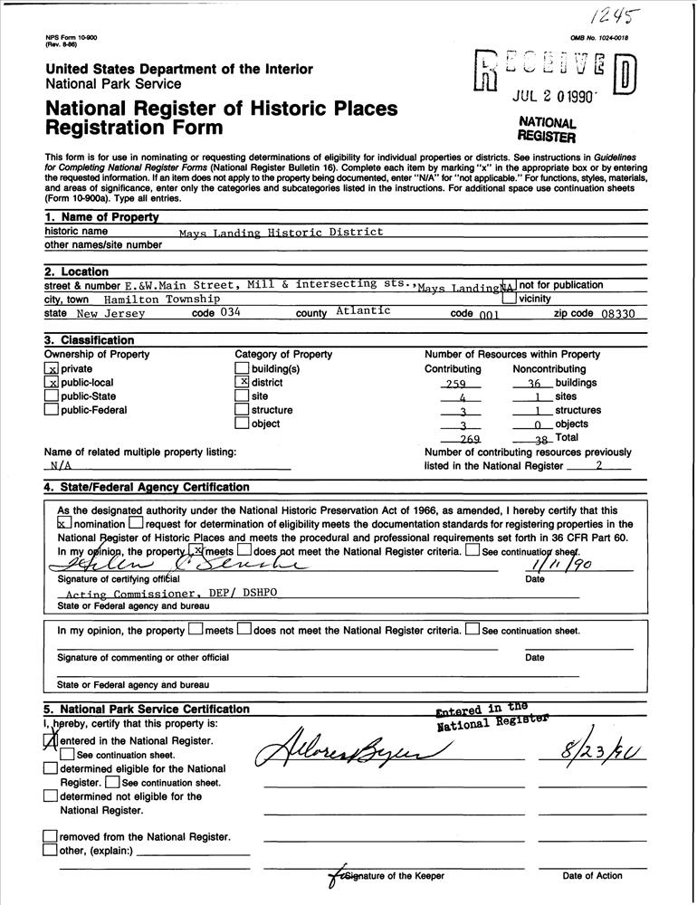 Mays Landing ; Jct. US 40, NJ 50; roughly bounded by Lake Lenape and Great Egg Harbor