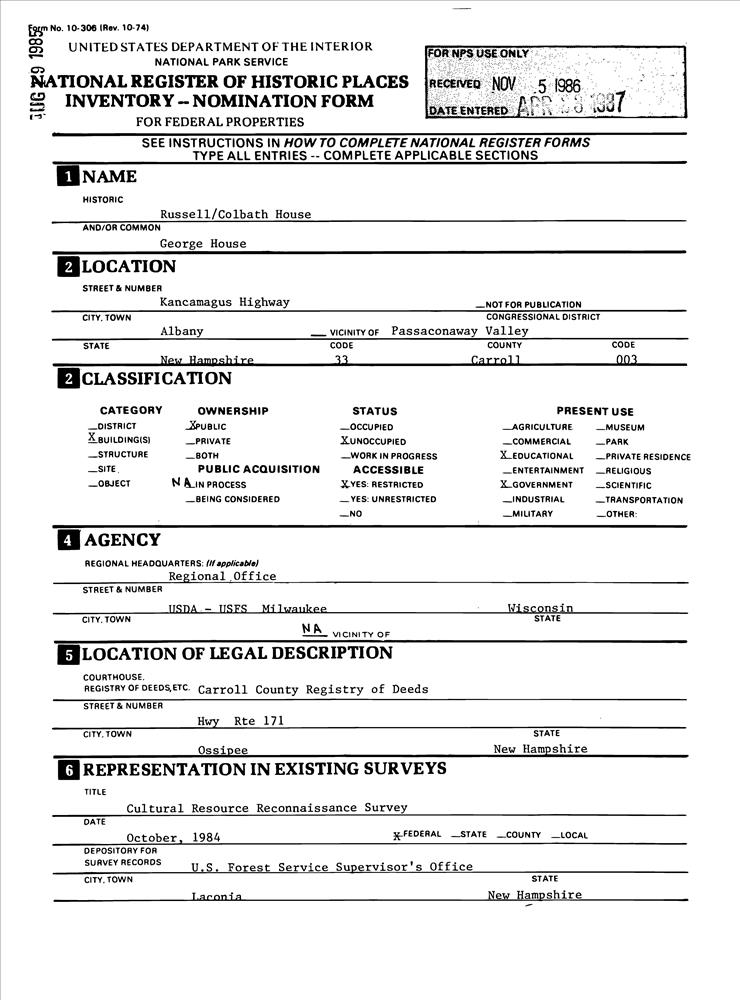 Albany ; Kancamagus Hwy.