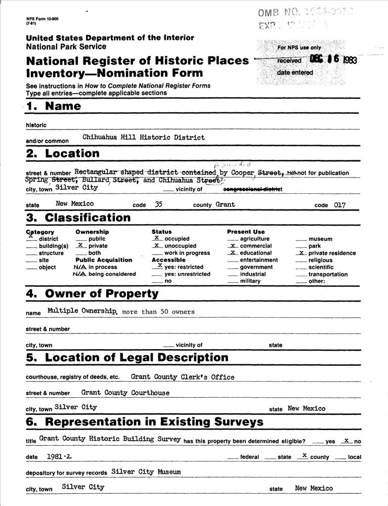 Silver City ; Bounded by Cooper, Spring, Bullard, and Chihuahua Sts.