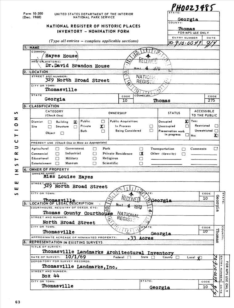 Thomasville ; 329 N. Broad St.