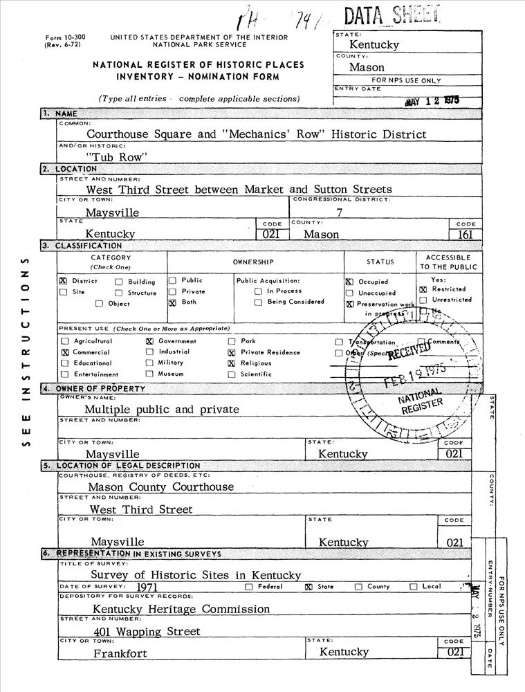 Maysville ; W. 3rd St. between Market and Sutton Sts.