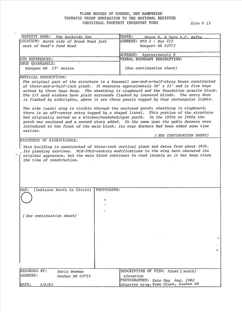 Plank Houses of Goshen New Hampshire TR