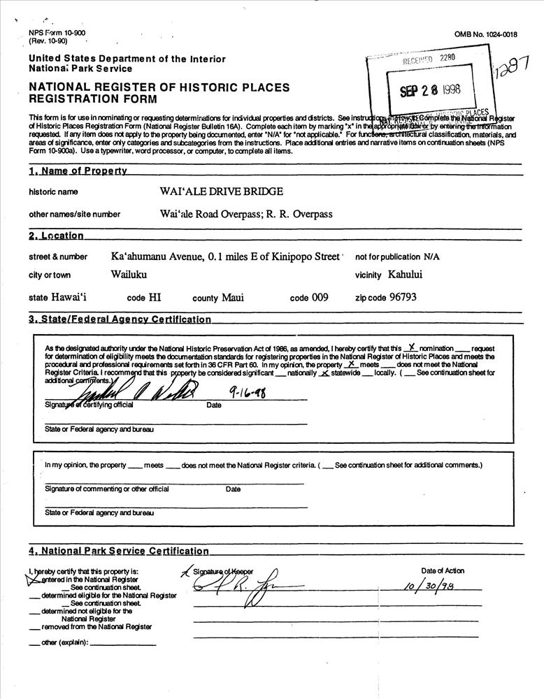 Wailuku ; Ka'ahumanu Ave., 0.1 mi. E of Kinipopo St.