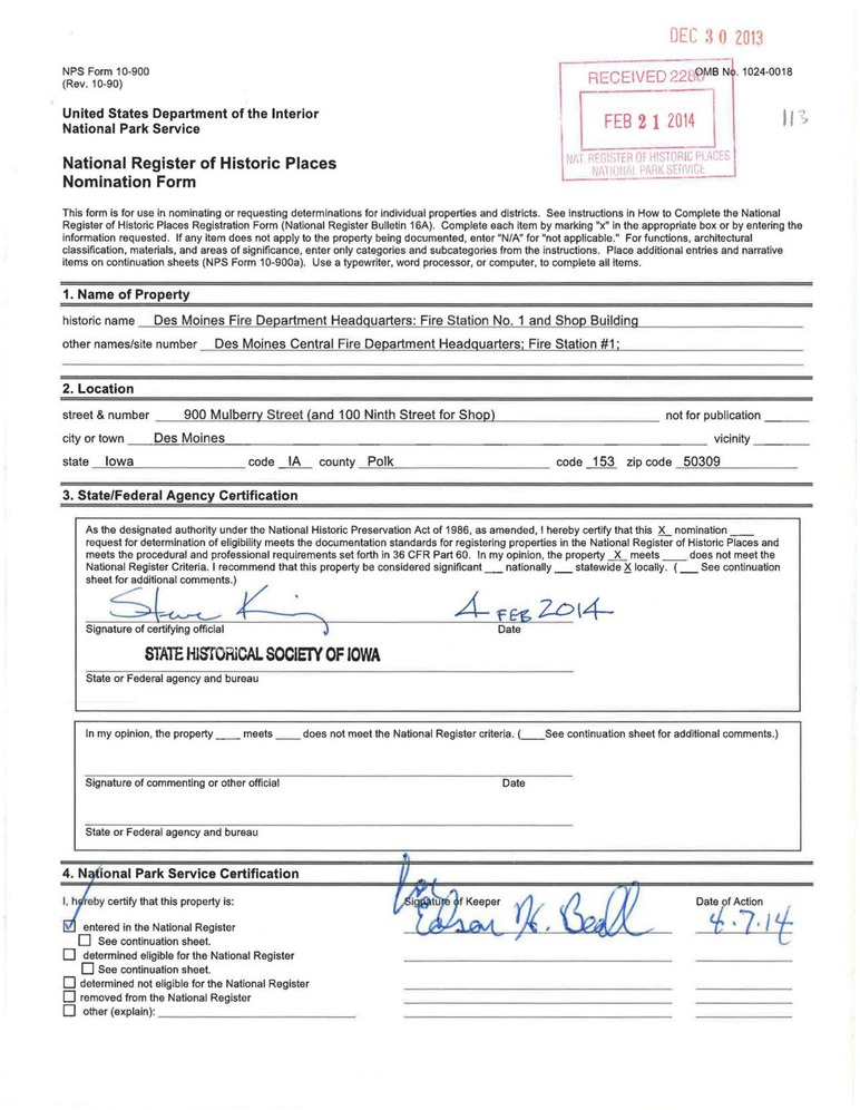 Des Moines ; 900 Mulberry St., 100 9th St.