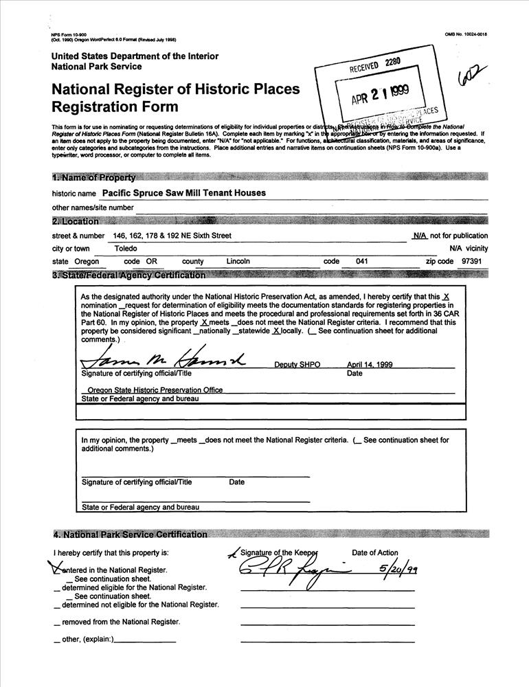 Toledo ; 146, 162, 178, and 192 NE Sixth St.