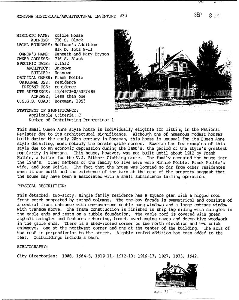 Bozeman ; 716 S. Black