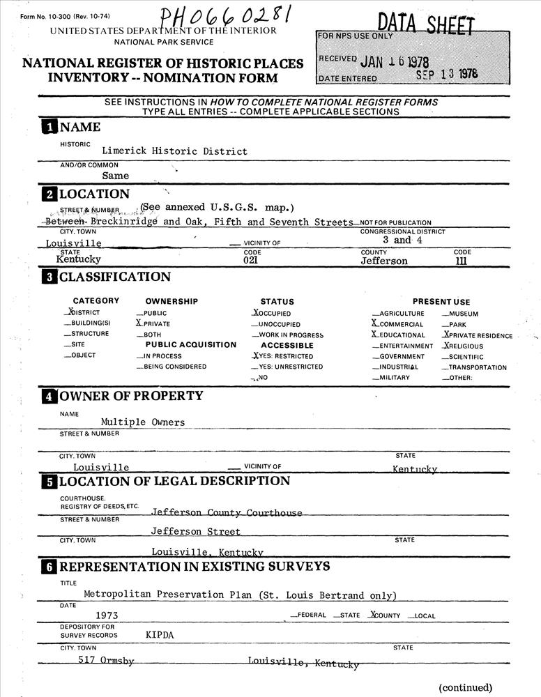 Louisville ; Roughly bounded by Breckinridge, Oak, 5th and 7th Sts.