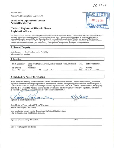 River Falls ; End of West Cascade Avenue, across the South Fork Kinnickinnic River