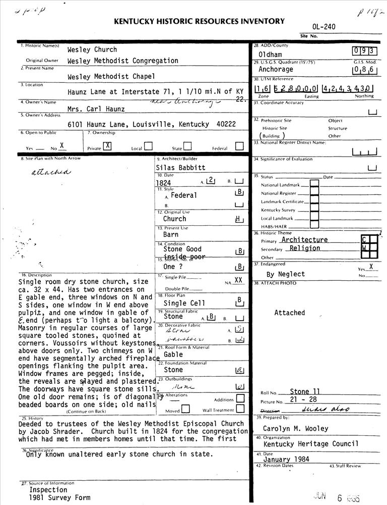 Early Stone Buildings of Kentucky Outer Bluegrass and Pennyrile TR