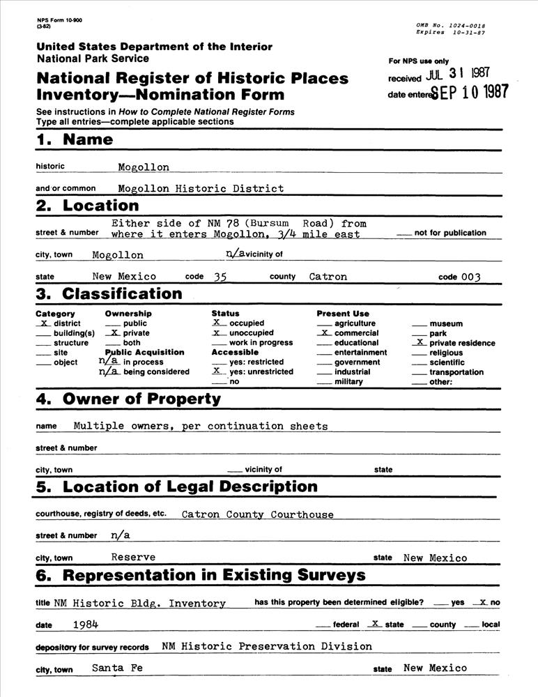 Mogollon ; NM 78/Bursum Rd.