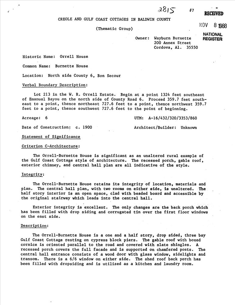 Creole and Gulf Coast Cottages in Baldwin County TR
