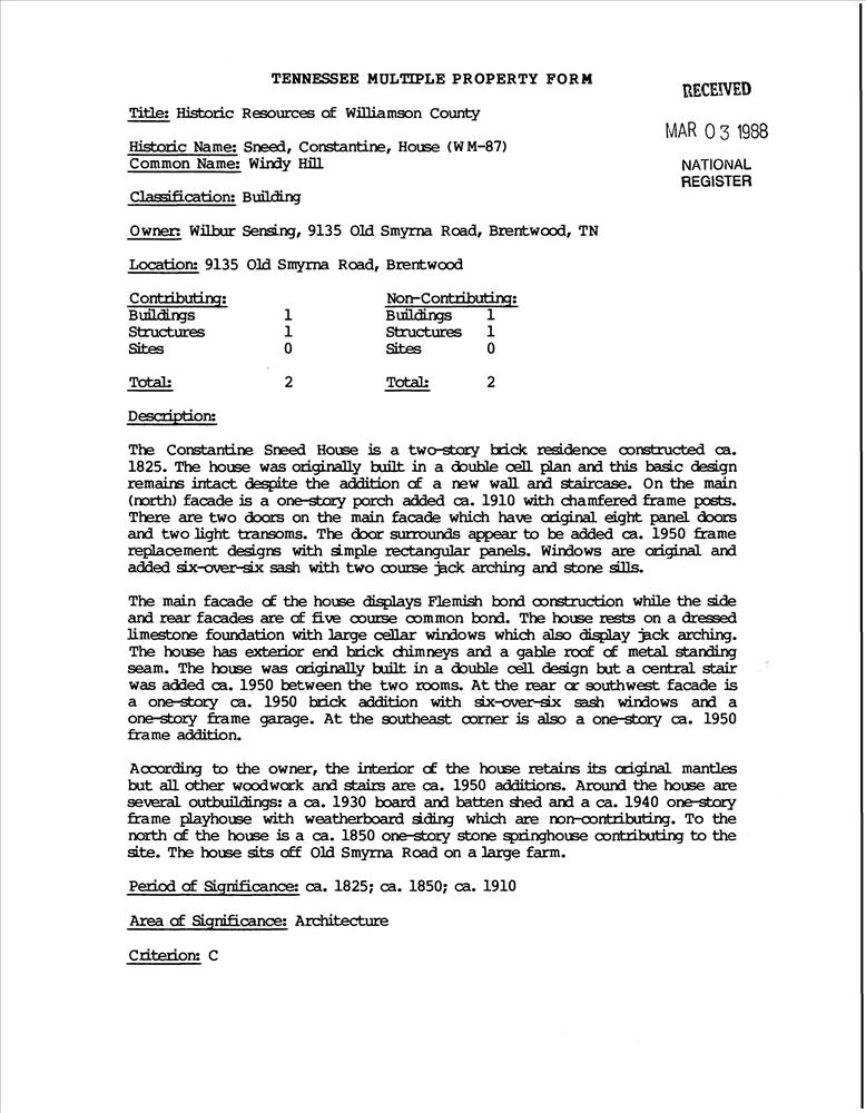 Sneed, Constantine, House