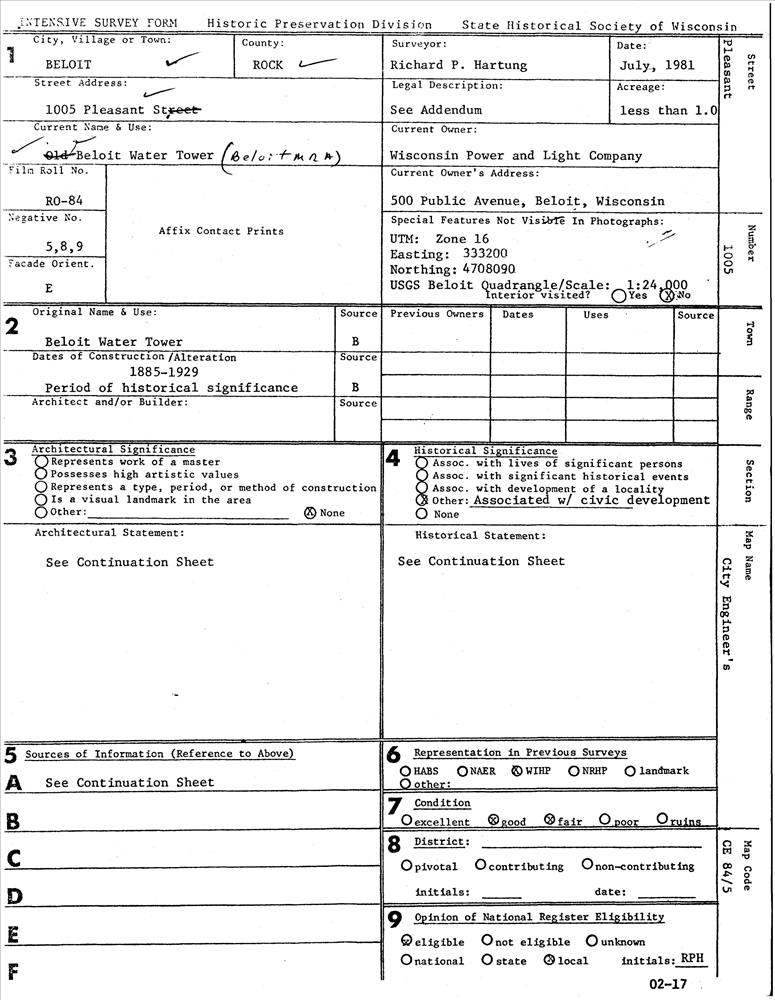 Beloit ; 1005 Pleasant St.