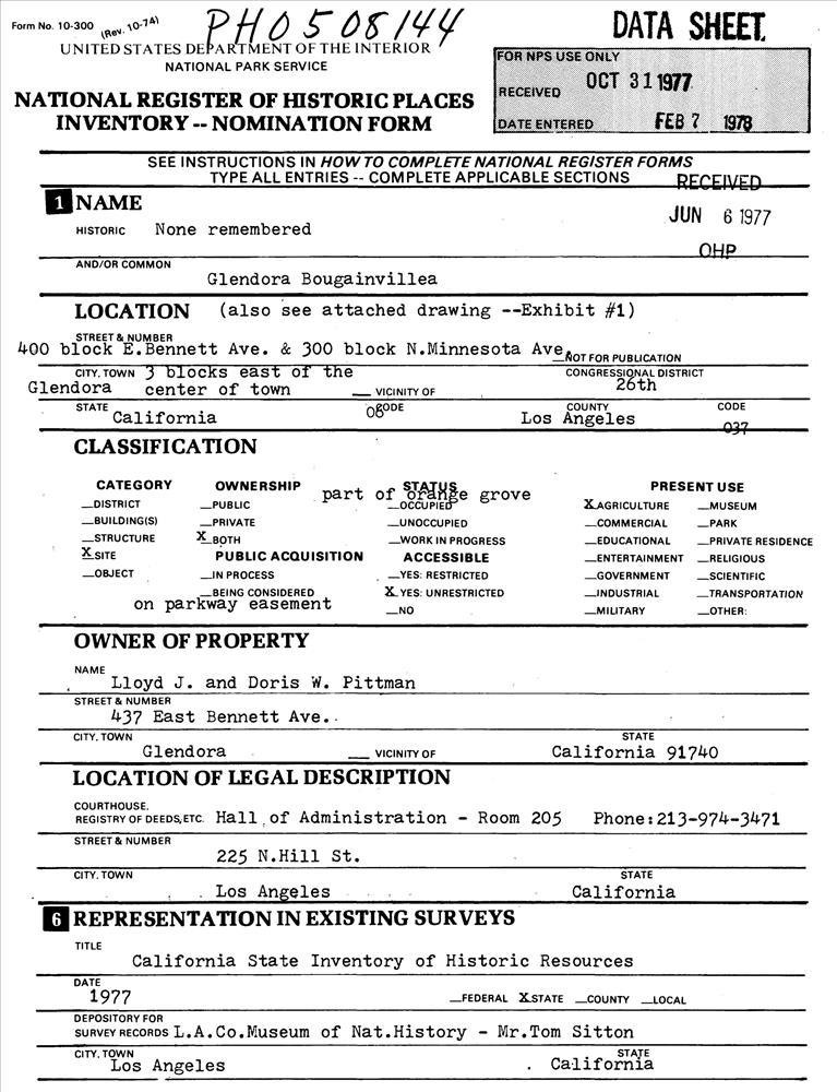 Glendora ; Bennett and Minnesota Aves.