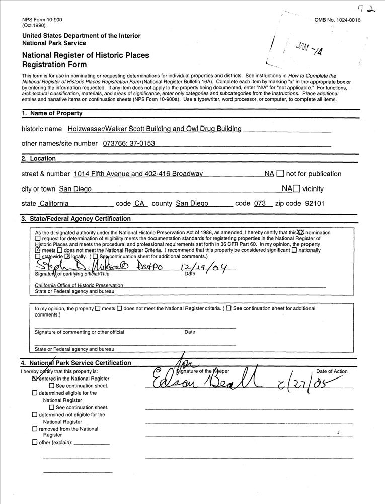 San Diego ; 1014 Fifth ave. and 402-416 Broadway