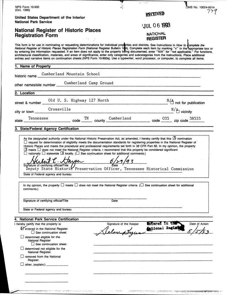 Crossville ; W side, Old US 127 N, 2 mi. N of Crossville