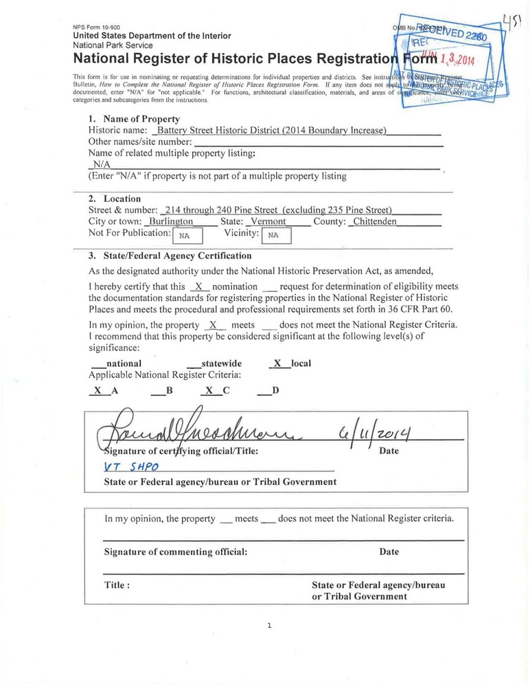 Burlington ; 214 through 240 Pine St. (excluding 235)