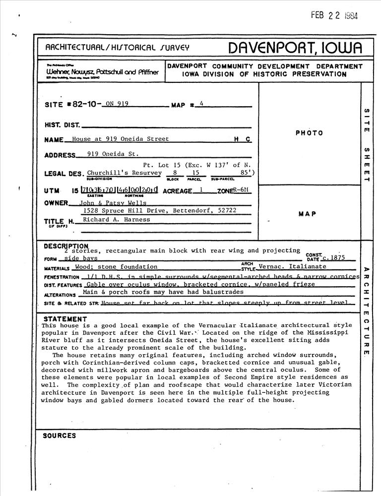 Davenport ; 919 Oneida St.
