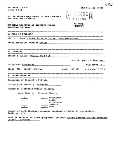 Cafeteria Building--Cleveland School