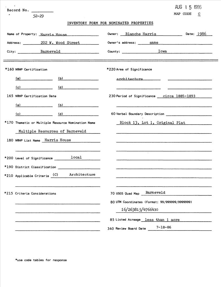 Barneveld ; 202 W. Wood St.