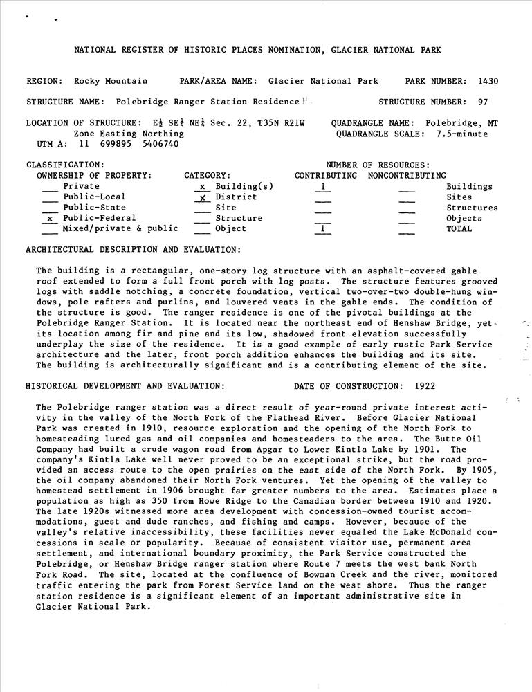 Polebridge Ranger Station Historic District