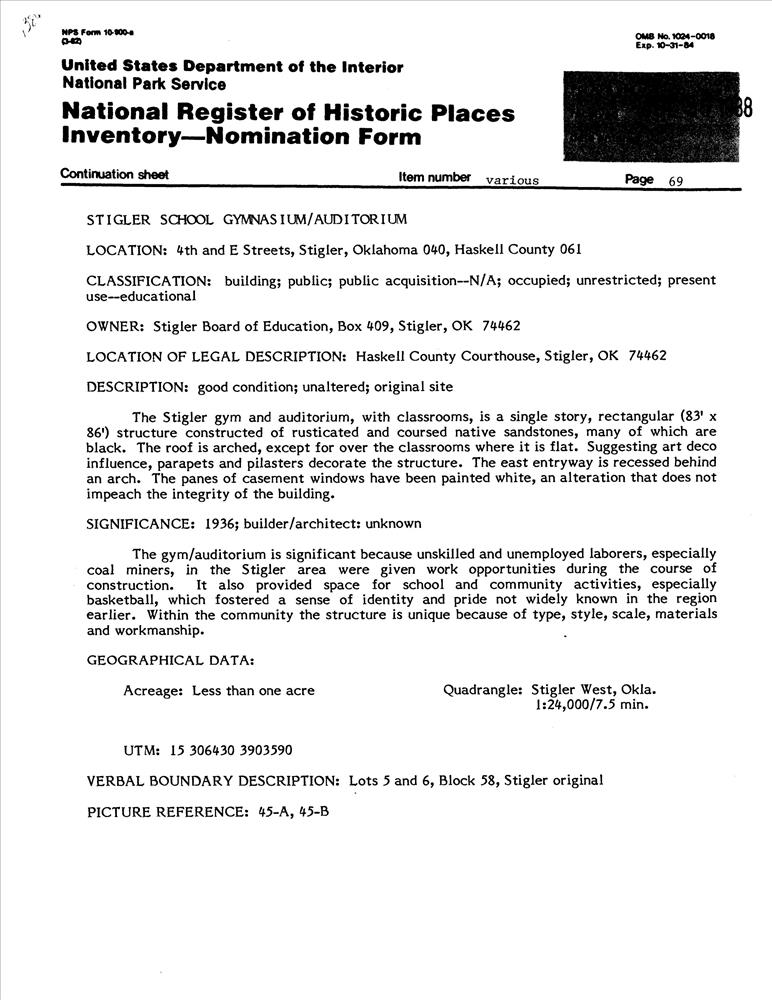 Stigler School Gymnasium--Auditorium