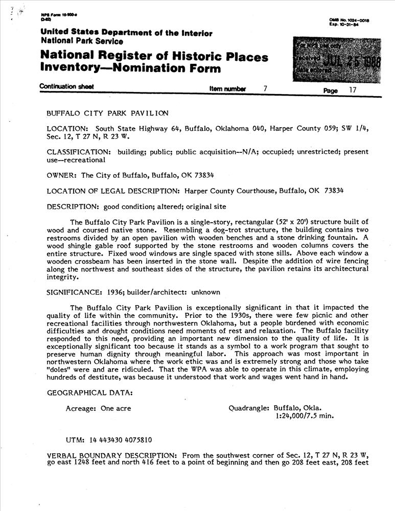 WPA Public Bldgs., Recreational Facilities and Water Quality Improvements in Northwestern Oklahoma, 1935--1943 TR