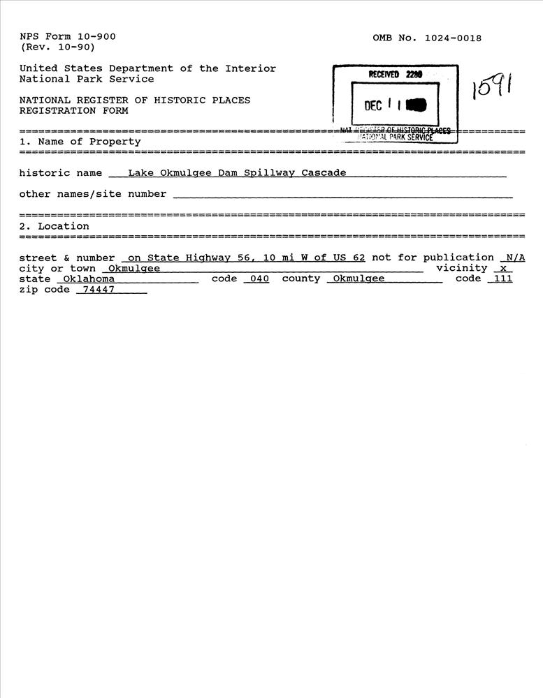 Lake Okmulgee Dam Spillway Cascade