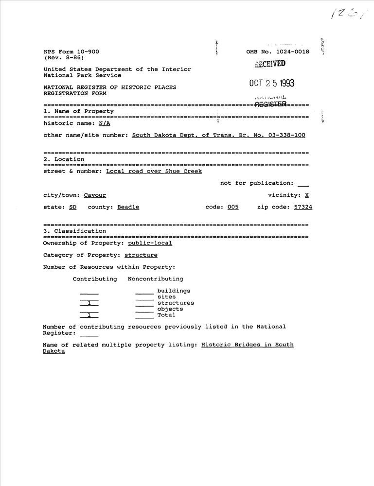 South Dakota Dept. of Transportation Bridge No. 03-338-100