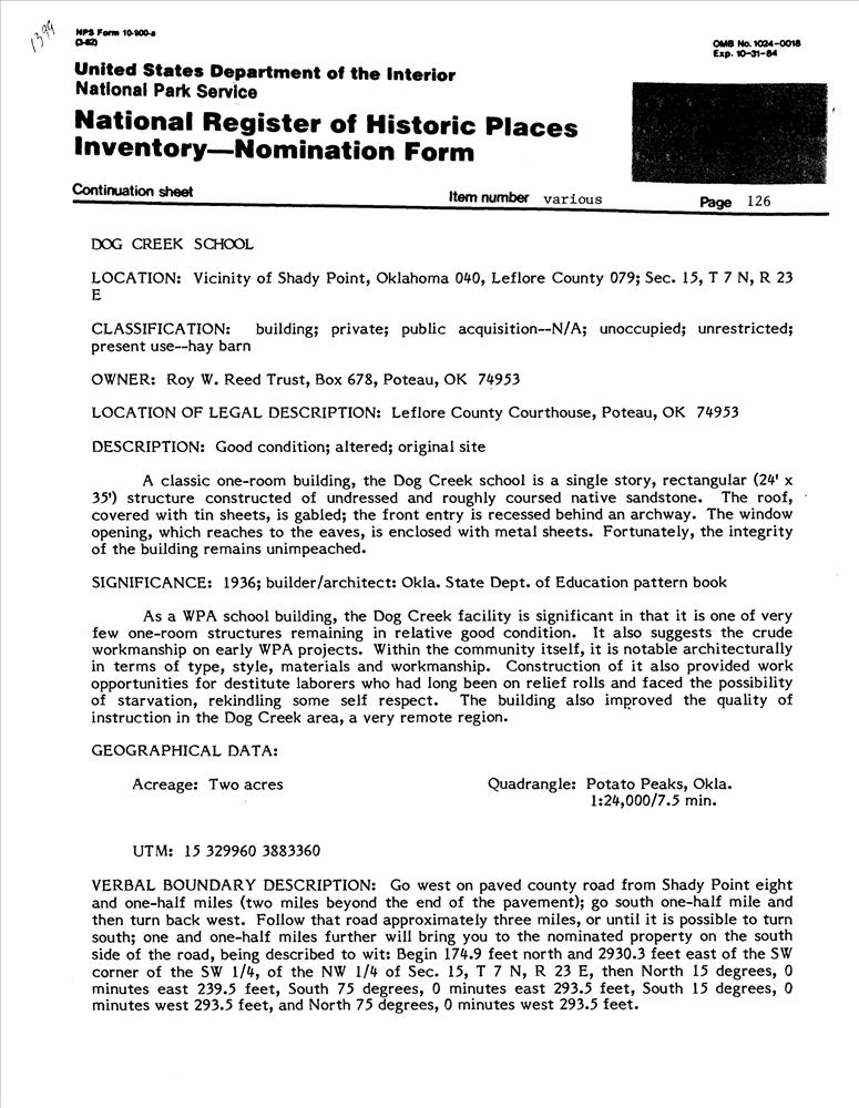 WPA Public Bldgs., Recreational Facilities and Cemetery Improvements in Southeastern Oklahoma, 1935--1943 TR