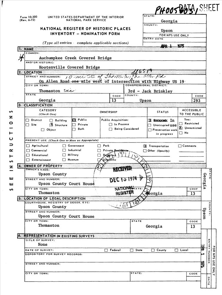 Thomaston ; 10 mi. SE of Thomaston off U.S. 19 on Allen Rd.
