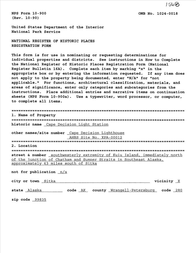 Sitka ; SW extremity of Kuiu Island, N of the jct ofChatham and Sumner Straits, approx. 63 mi. S of Sitka