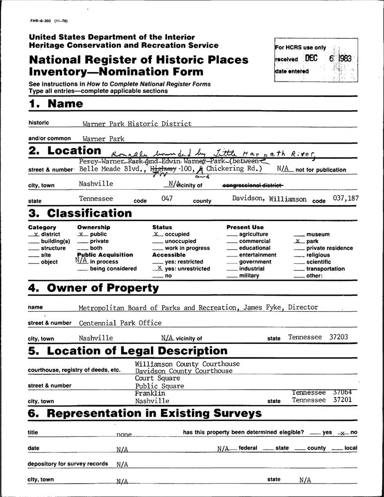 Nashville ; Roughly bounded by Little Harpeth River, Belle Meade Blvd., TN 100, and Chickering Rd.