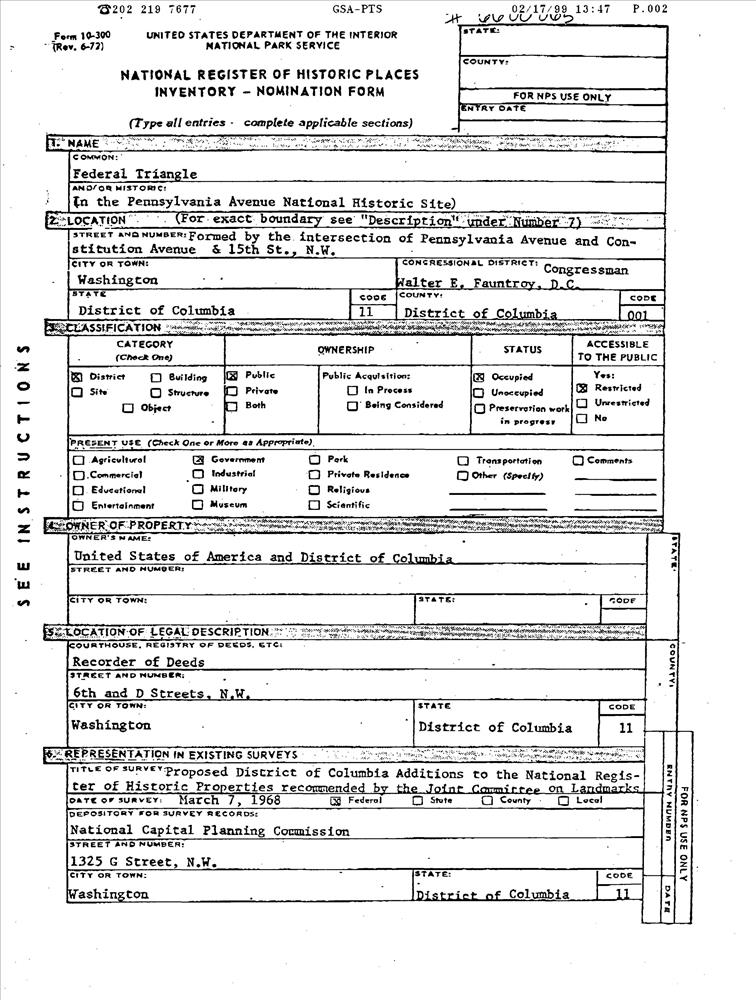 District of Columbia ; Washington ; Roughly bounded by Constitution Ave., F St., 3rd, and 15th Sts. NW