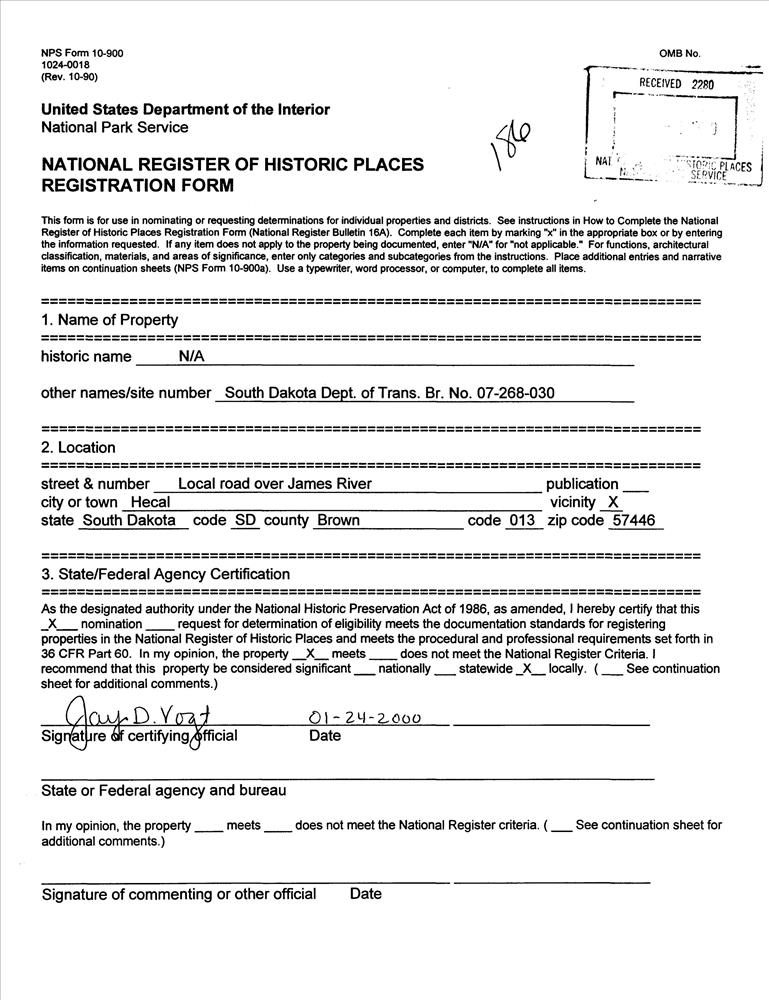 South Dakota Dept. of Transportation Bridge No. 07-268-030