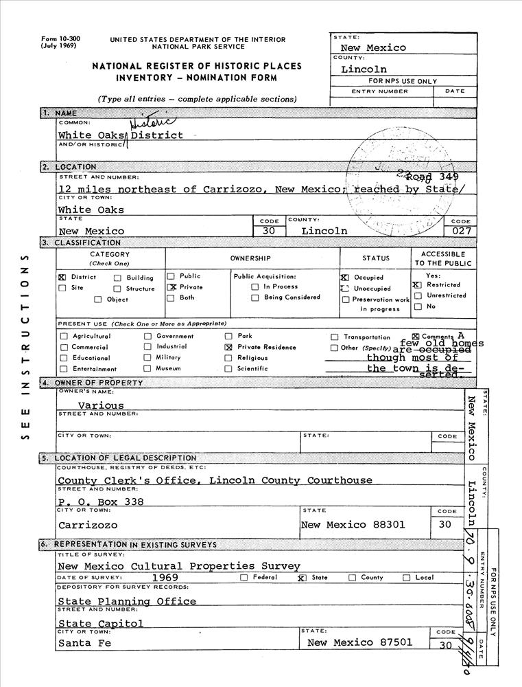 White Oaks ; 12 mi. NE of Carrizozo on NM 349