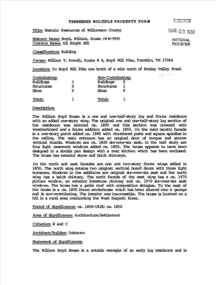 Franklin ; Boyd Mill Pike 1/10 mi. N of Boxley Valley Rd.