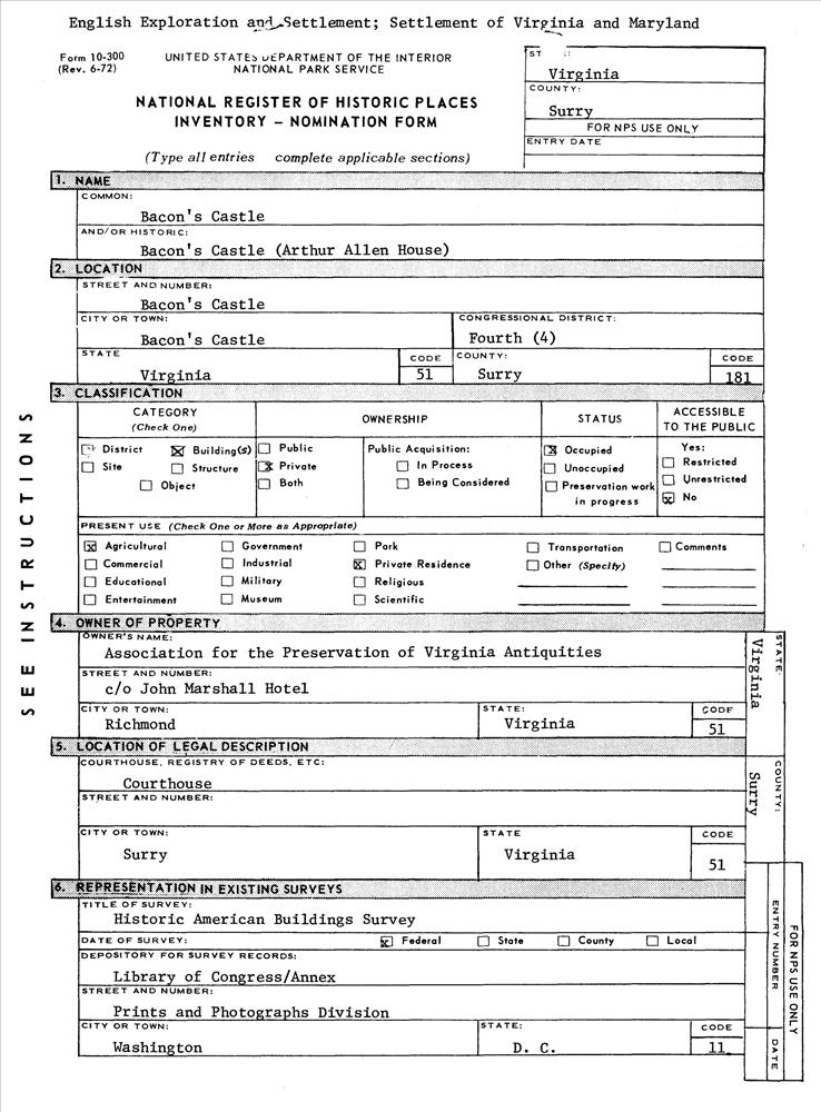 Bacon's Castle ; Off VA 10