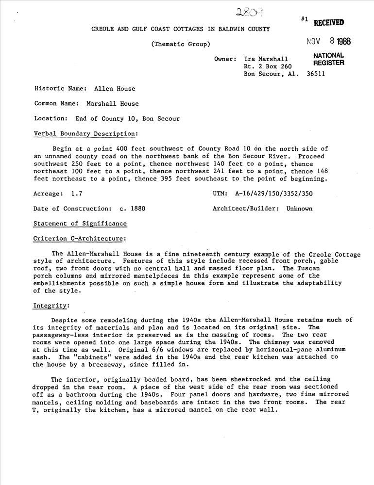 Creole and Gulf Coast Cottages in Baldwin County TR