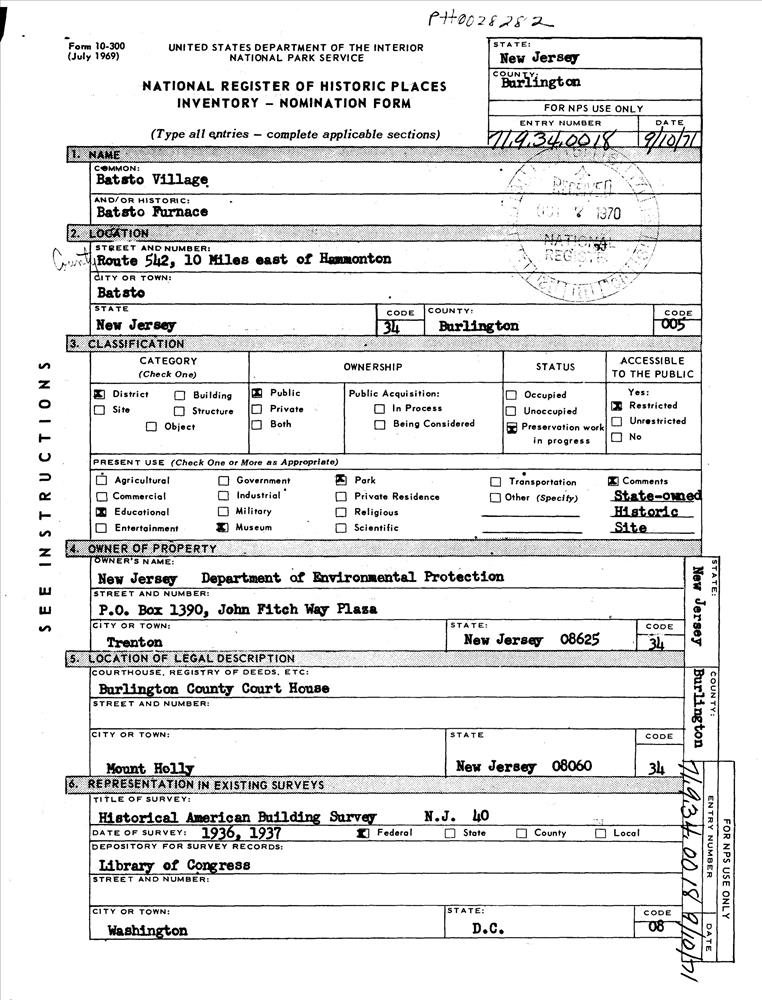 Batsto ; 10 mi. E of Hammonton on CR 542