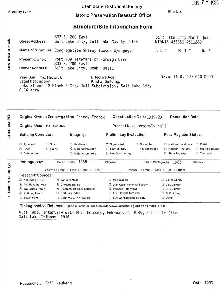 Salt Lake City ; 833 S. 200 East