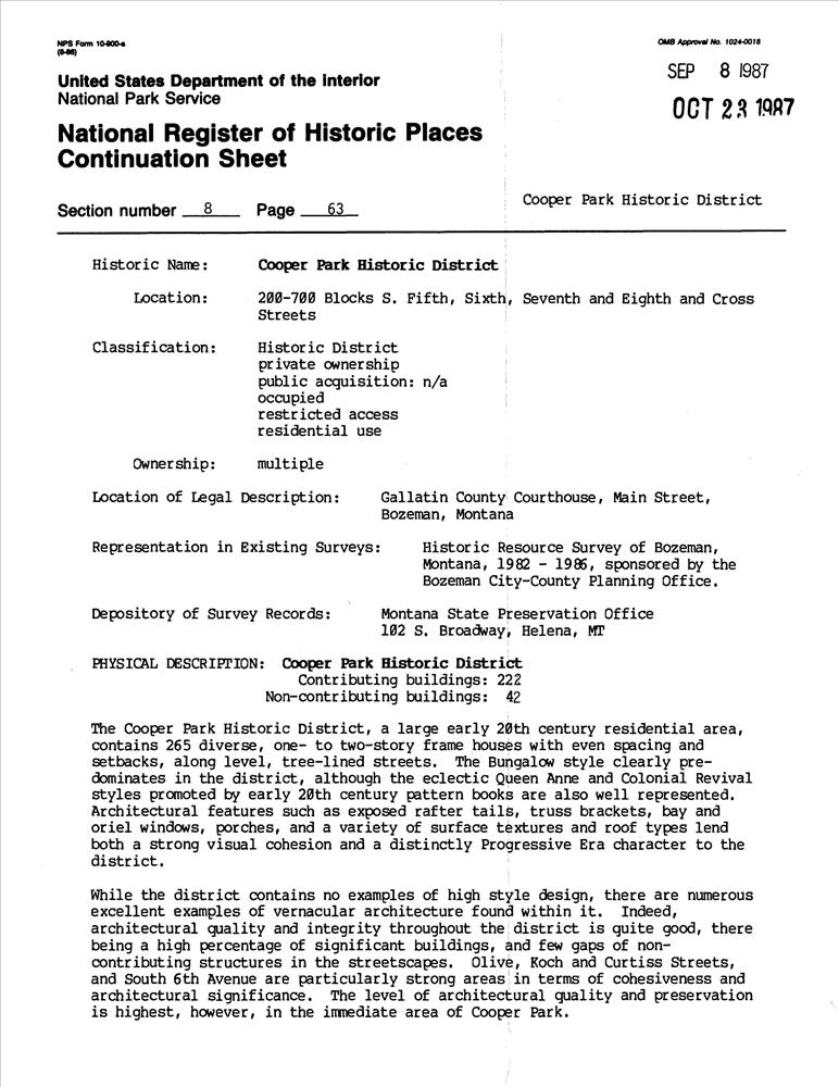 Bozeman ; 200--700 blks. S. Fifth, Sixth, Seventh, Eighth, & Cross Sts.