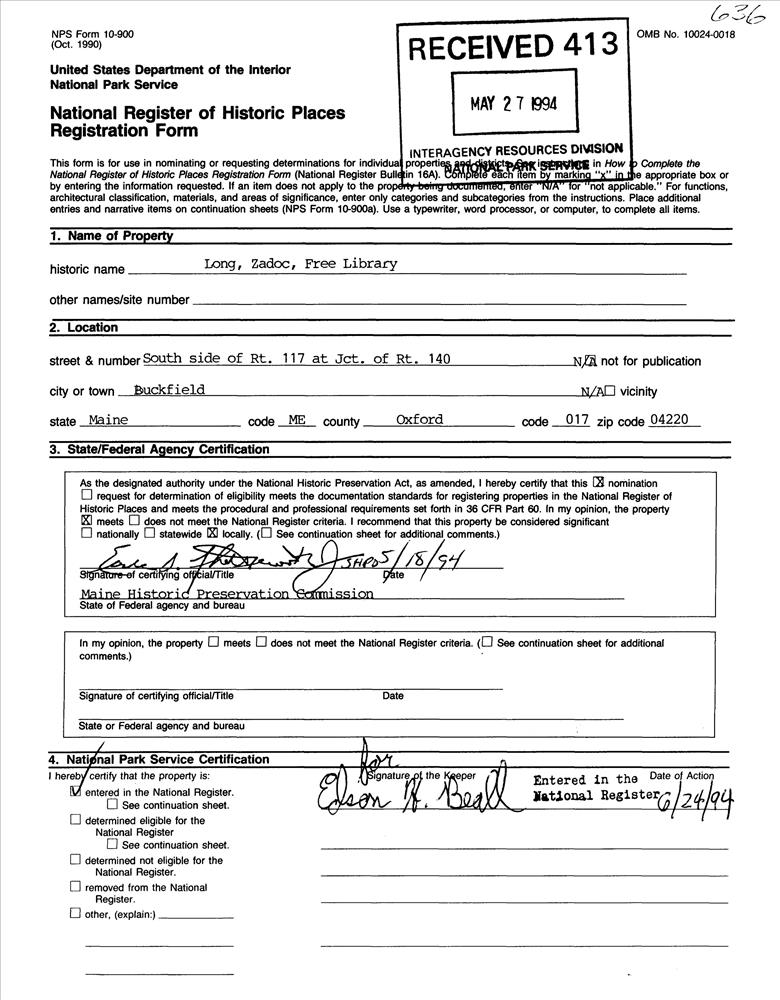 Long, Zadoc, Free Library