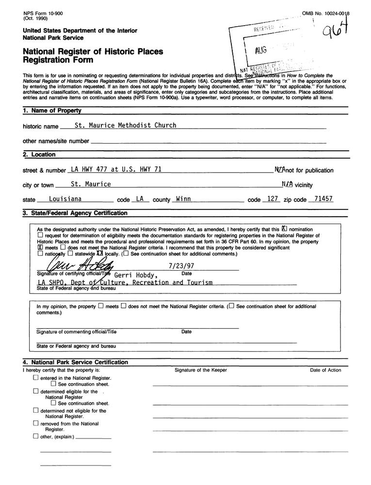 St. Maurice ; Jct. of LA 477 and LA 71