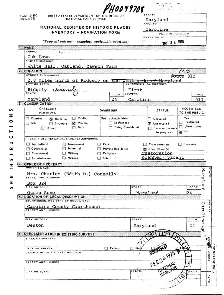 Ridgely ; 2.8 mi. N of Ridgely on MD 312
