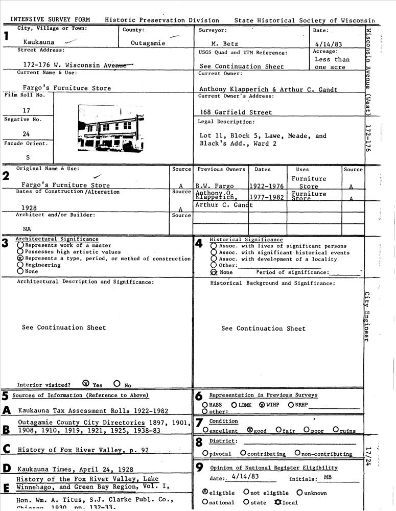 Kaukauna ; 172-176 W. Wisconsin Ave.